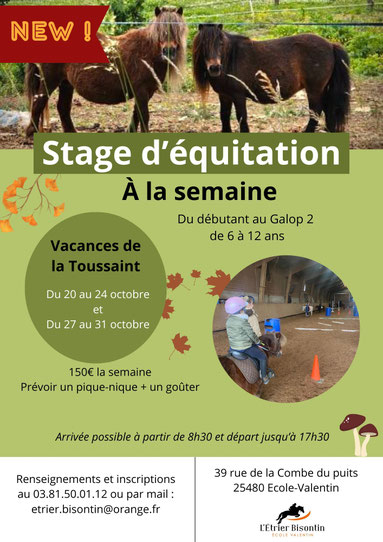 Stages et cours vacances de la Toussaint