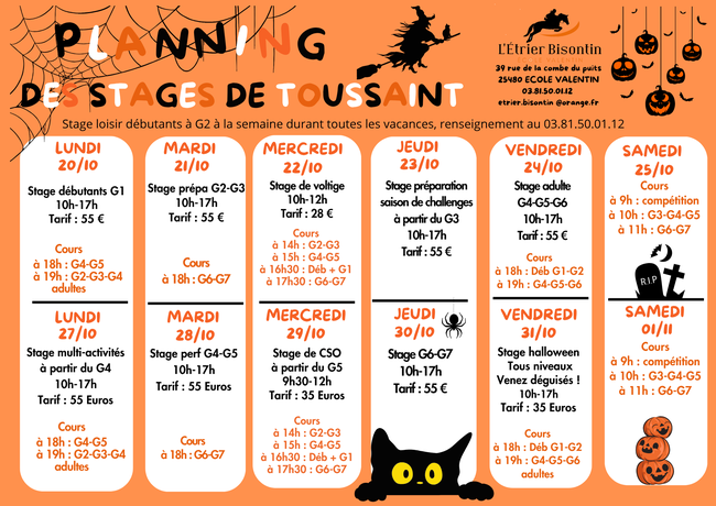 Voici les stages et les cours que nous proposons pendant les vacances de la Toussaint !